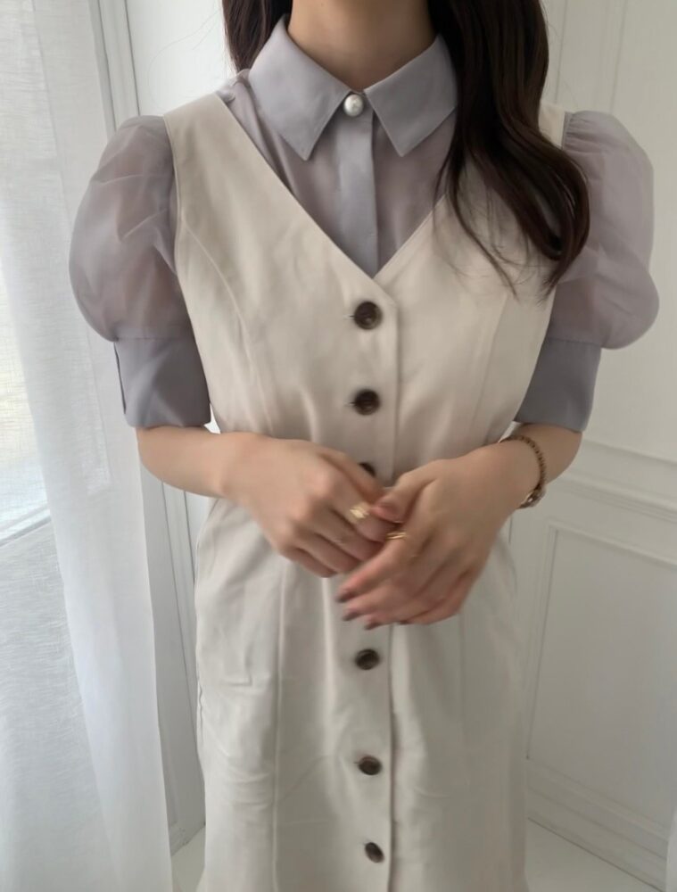 シアーパフ袖シャツブラウス