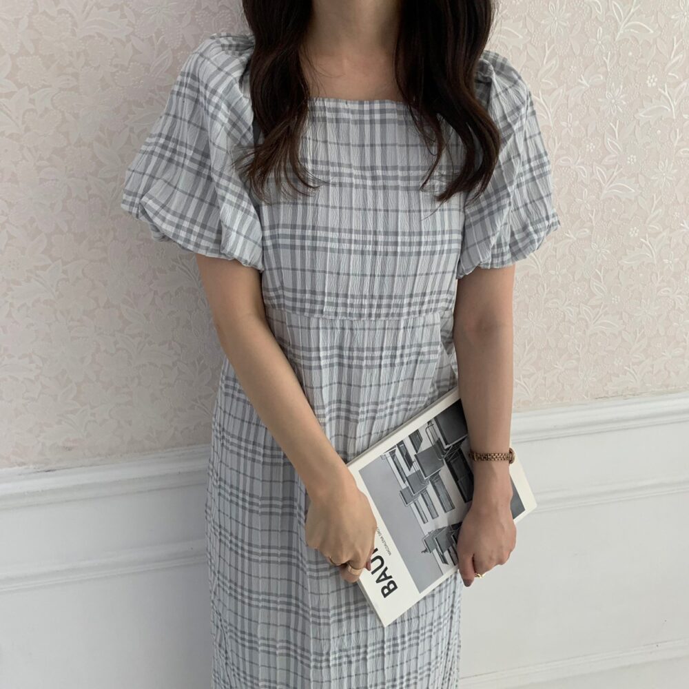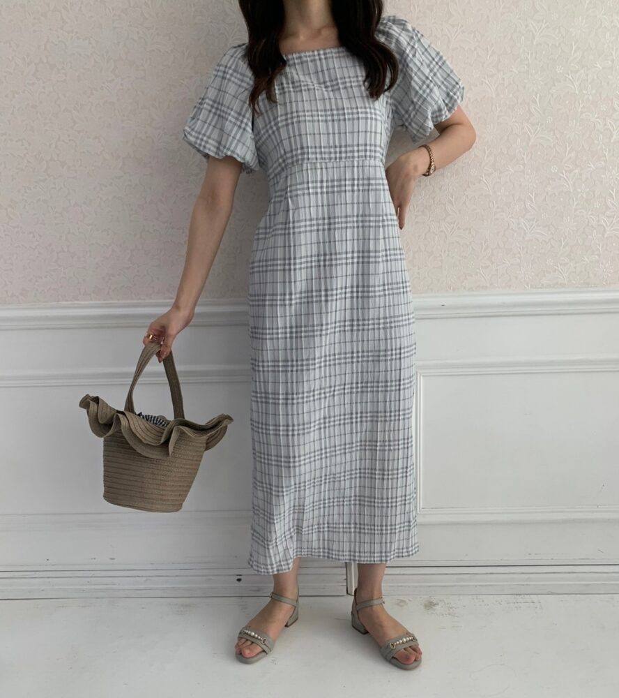 淡いブルーチェックが可愛いワンピース🐏